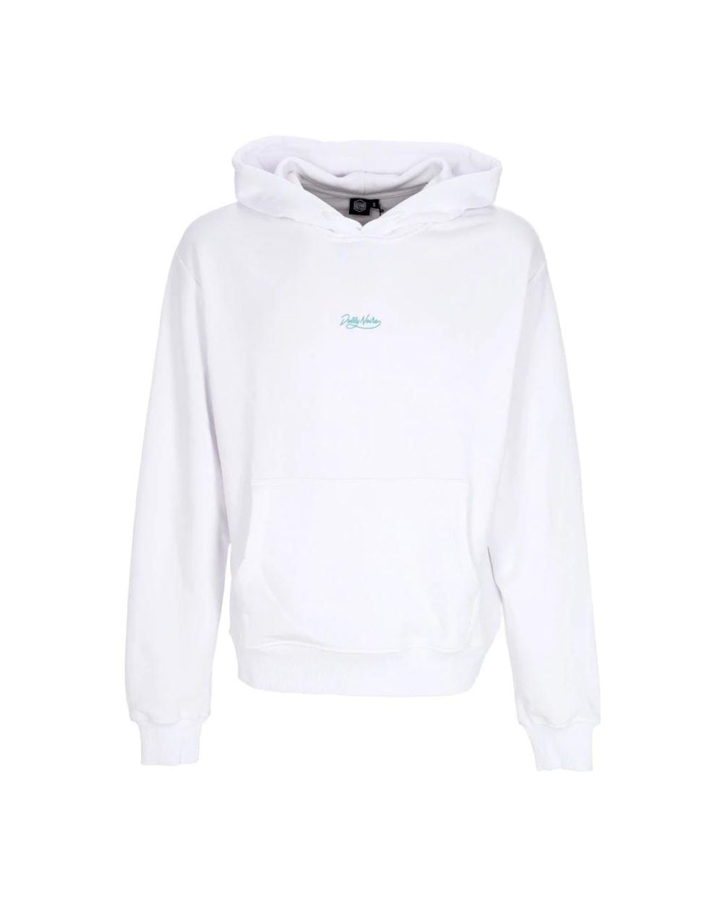 Elevate your casual style with this lightweight long-sleeved hoodie from Dolly Noire. Featuring an adjustable hood with drawstring, front kangaroo pocket, and the Dolly Noire logo printed on the front. The oversize silk-screen print on the back adds a trendy touch. Made from 85% Cotton and 15% Polyester. Easy to care for with hand or machine wash. Perfect for the modern man. Colour: white