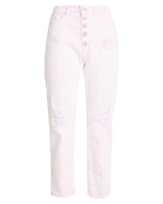 DONDUP. tapered jeans, model: koons gioiello, denim, distressed, plain colour, brand logo, coloured wash, high waisted, belt loops, regular fit, button fastenings, five pockets, machine wash, do not bleach, do not tumble dry. 100% Cotton.