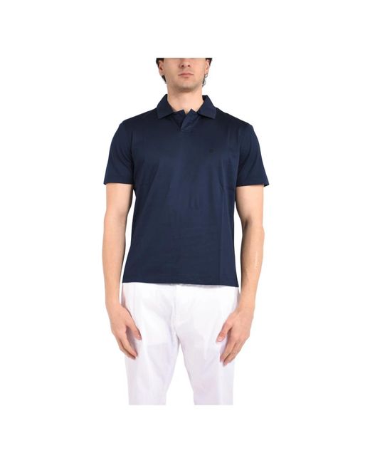 Dondup polo shirt with a buttoned collar and chest logo, designed for a slim silhouette and everyday wear. Key attributes: Blue | Blu | Cotton | Buttoned collar | Chest logo | Made in Italy | Dimensions & fit: Model height 1.85 m | Wearing size L | Slim fit | Composition & care: 100% cotton Colour: blue