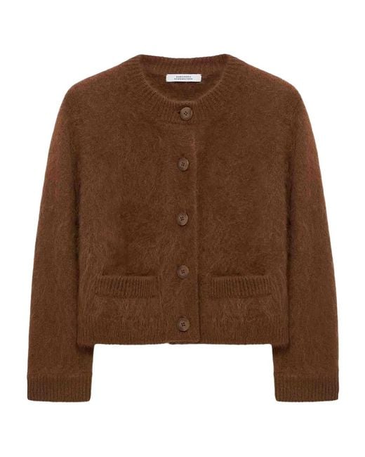 Women's Brown Fluffy Statements Pocket Button Cardigan