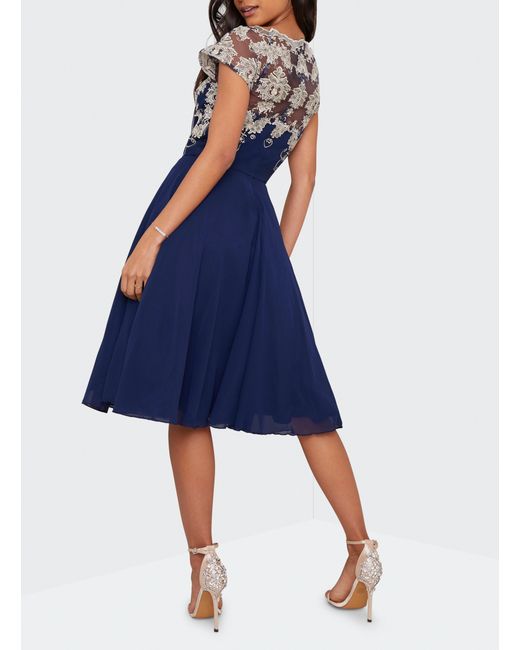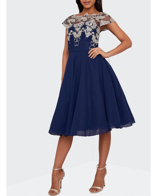 Women's Blue Chi Chi London Navy Cap Sleeve Tea Dress