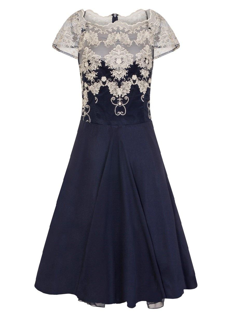 Chi Chi London Navy Cap Sleeve Tea Dress