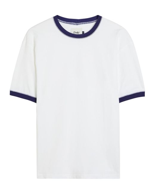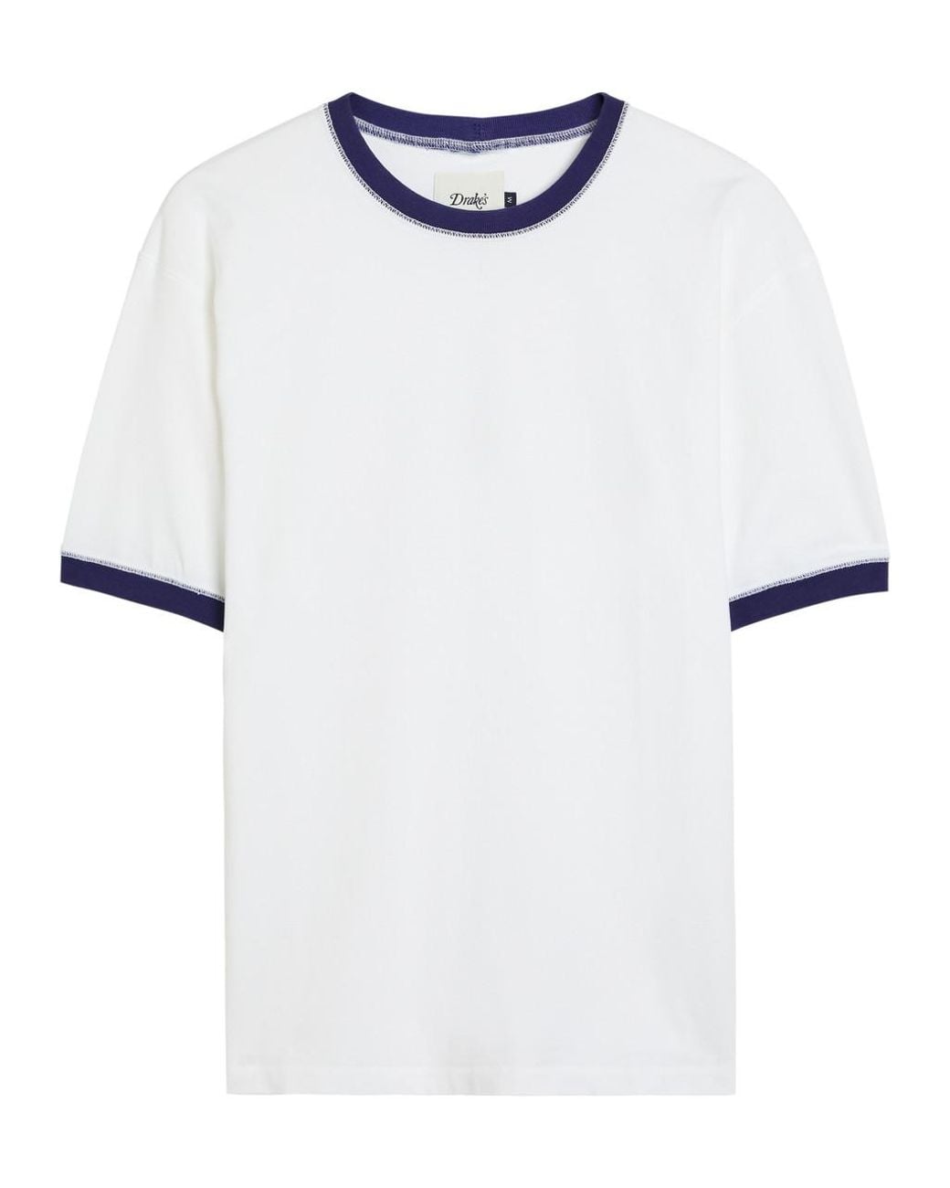 Info & Care Drake's cotton T-shirt Crew-neck, contrasting trims, exposed seams; Slips on 100% cotton Machine wash Size & Fit Length shoulder to hem: 26 inches/ 66cm Midweight Regular fit Model is 6'1""/ 185cm, chest size 38 inches and wears a size medium Colour: white
