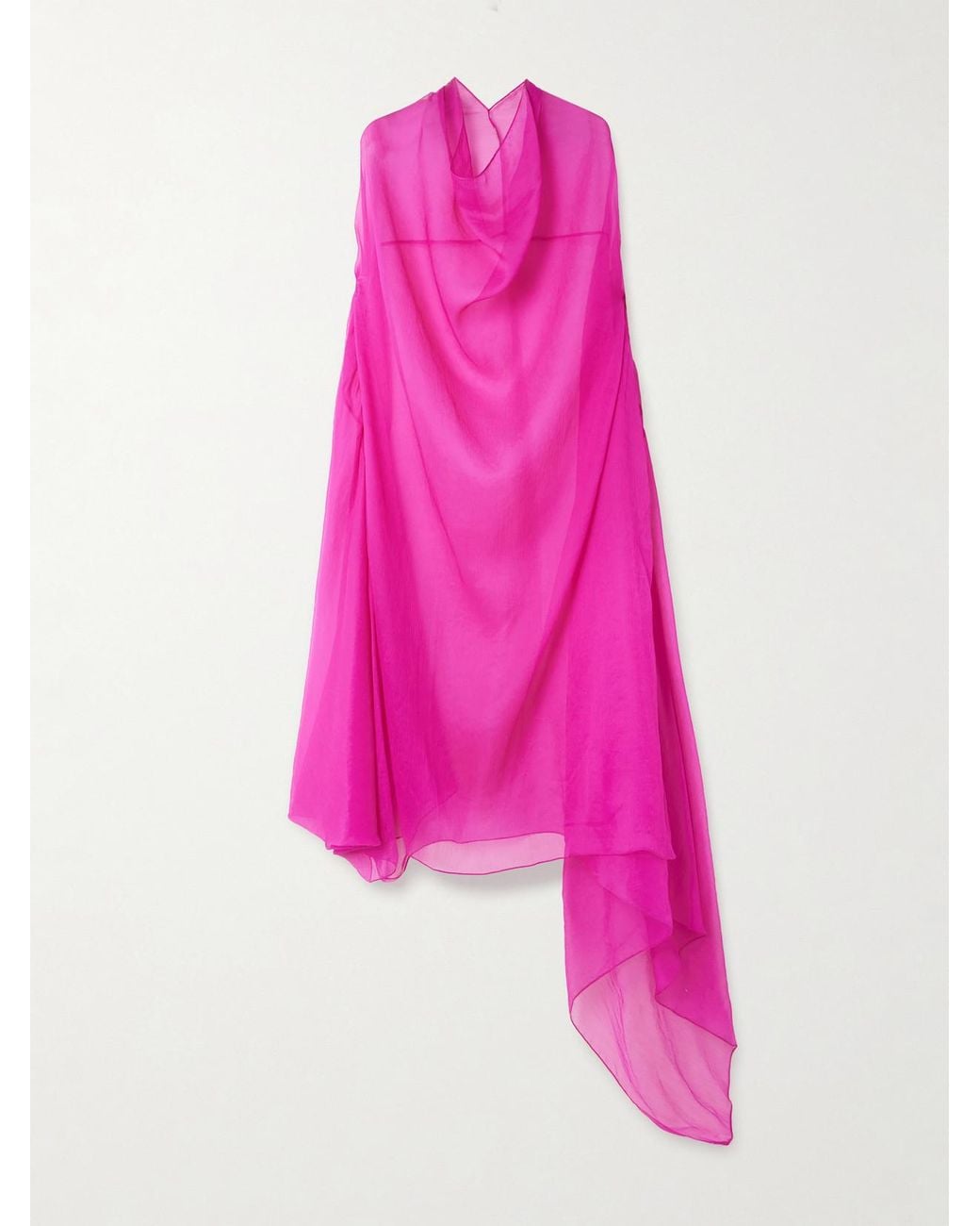 Women's Pink Draped Silk-Chiffon Midi Dress