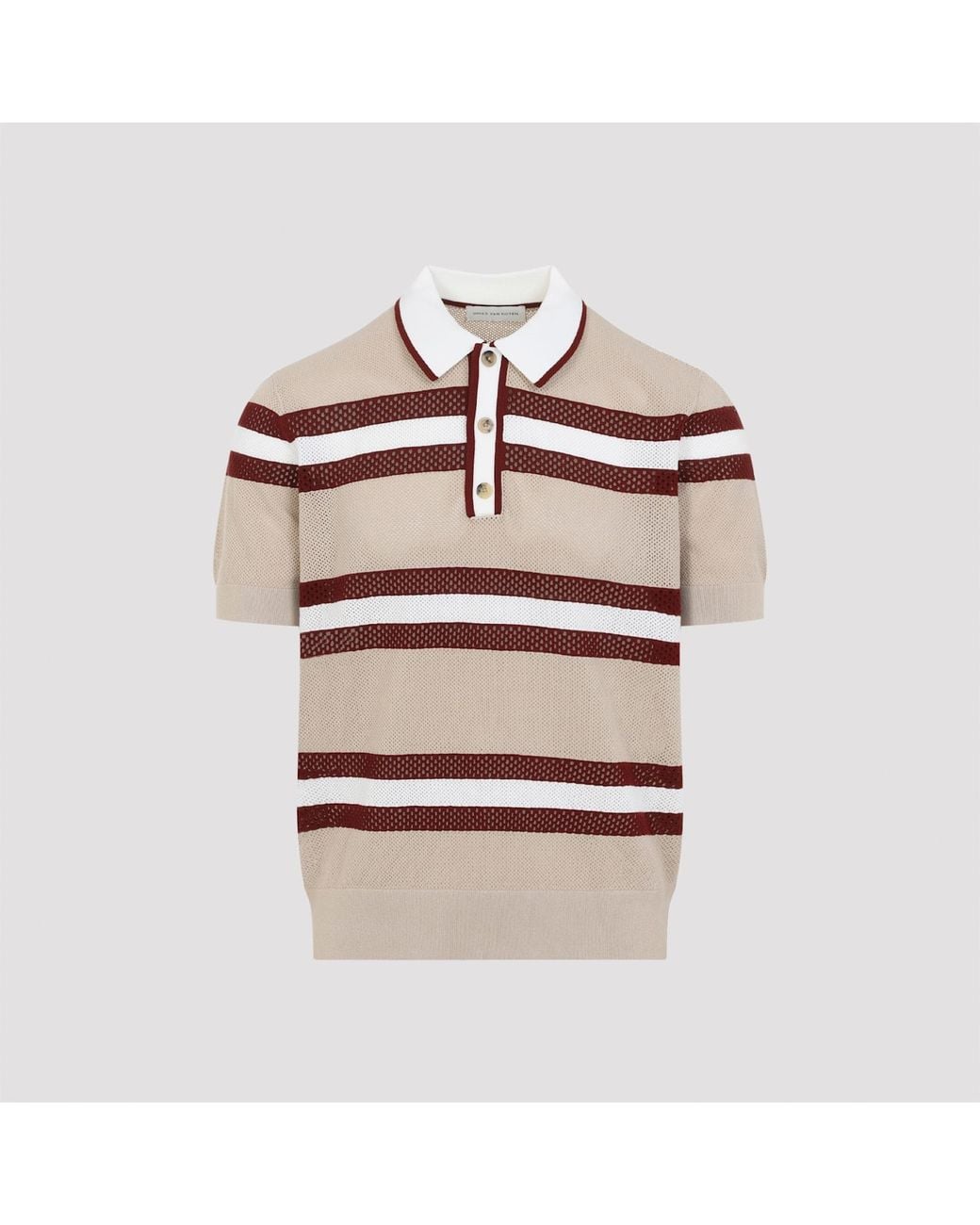 Dries Van Noten Mercy Beige Viscose Polo. Crafted from beige, white and burgundy viscose mesh, featuring a striped pattern, a contrasting white collar, front button fastening, short sleeves, and ribbed edges.. Gender: Men. Material: 70%VISCOSE 30%POLYESTER. Color: Beige. Made in: Belgium. Product ID: 2610212183701_103. *Import tax/duty will be calculated at checkout (If applicable) Colour: natural