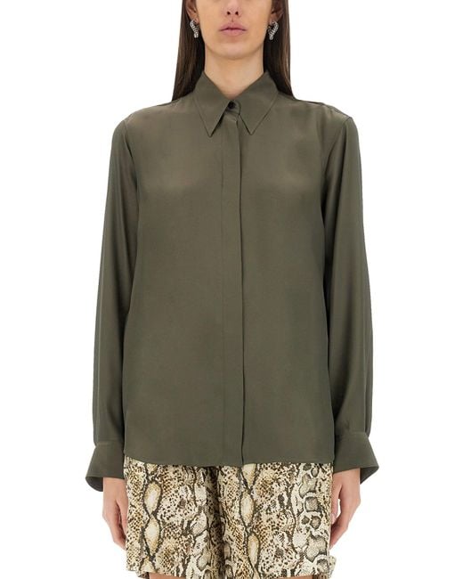 Women's Green Silk Blend Satin Shirt