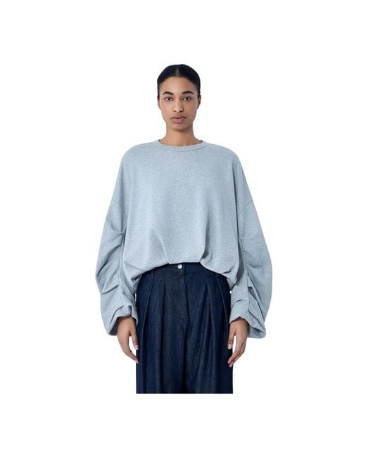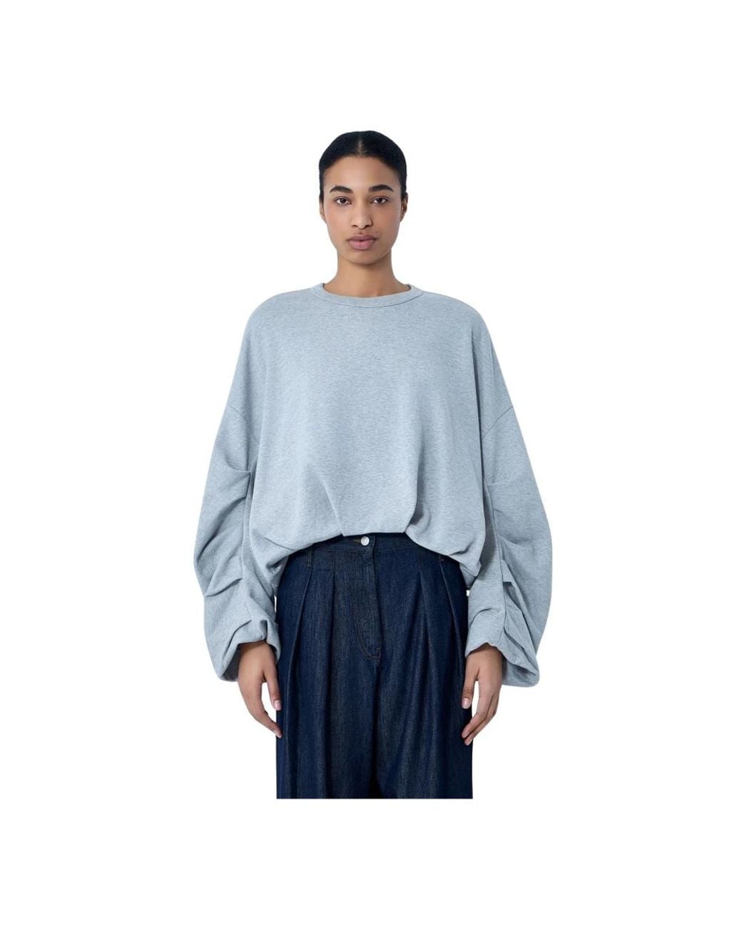 Dries Van Noten Oversized Crewneck Jumper is a relaxed crewneck made in cotton-blend jersey, designed for comfortable layering and everyday wear. Key attributes: Grey | Grey | Cotton-blend jersey | Crewneck | Long sleeves | Ribbed trims | Oversized silhouette | Dimensions & fit: Oversized fit Colour: blue