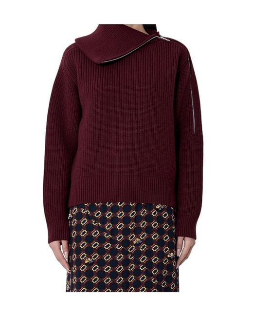 Women's Red Zip-Collar Jumper