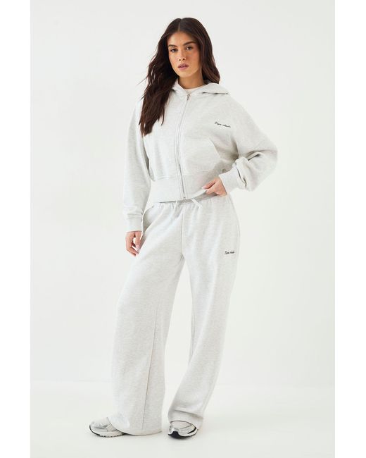 Women's White Script Embroidered Hooded Tracksuit