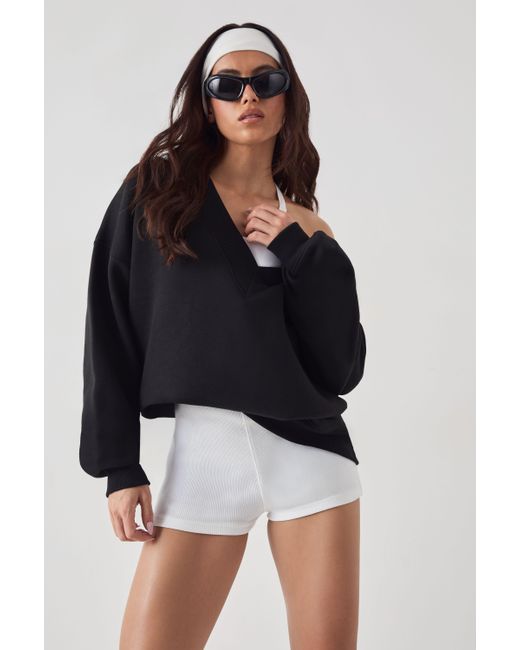 Women's Black Sport V Neck Oversized Sweatshirt