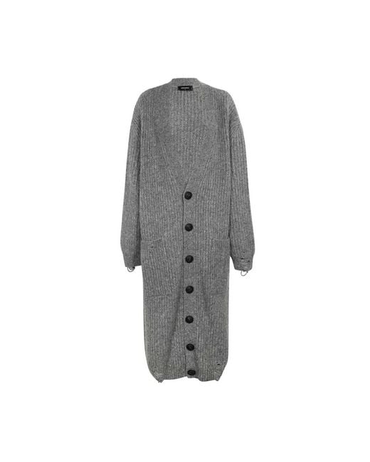 Stay cosy and stylish with this Distressed Knit Cardigan with Pockets from Dsquared 2. Crafted from a luxurious blend of alpaca wool, wool, and polyamide, this cardigan features distressed details and two front pockets, offering both warmth and a fashionable edge. Key attributes: Heather Grey | Grey | 68% Alpaca Wool, 10% Wool, 22% Polyamide | Two front pockets | Distressed details | Long sleeves | Chunky ribbed knit | Dimensions & fit: Extra-long length | Regular fit | Composition & care: 68% Alpaca Wool | 10% Wool | 22% Polyamide | Dry clean only Colour: grey