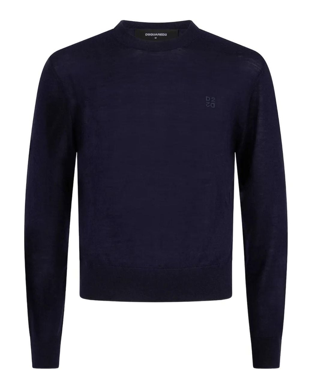 Blue embroidered detail crew neck long sleeves ribbed trim knitted construction Size: XS. Gender: Male. Material:Fabric. Colour: blue