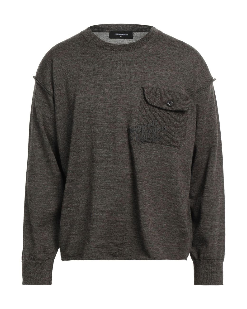 DSQUARED2. wool, lightweight knit, brand logo, mélange, crewneck, long sleeves, one chest pocket, hand wash or dry clean, do not bleach, do not tumble dry, designed for a loose fit. 100% Virgin Wool.