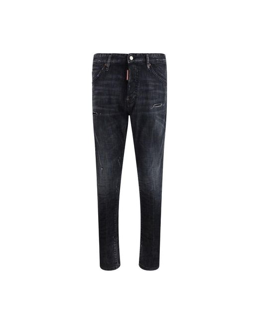 The Teddy Wash Jeans by Dsquared2 crafted from stretch cotton denim, featuring a vintage wash with destroyed details for an authentic worn-in look. Designed with a concealed closure, classic five-pocket construction, the signature red Dsquared2 tag on the front pocket, and a branded leather patch at the back. An iconic style combining comfort, flexibility, and the brand's distinctive aesthetic. Season: SS26Fit: SlimComposition: 98% Cotton 2% Elastane. Colour: blue
