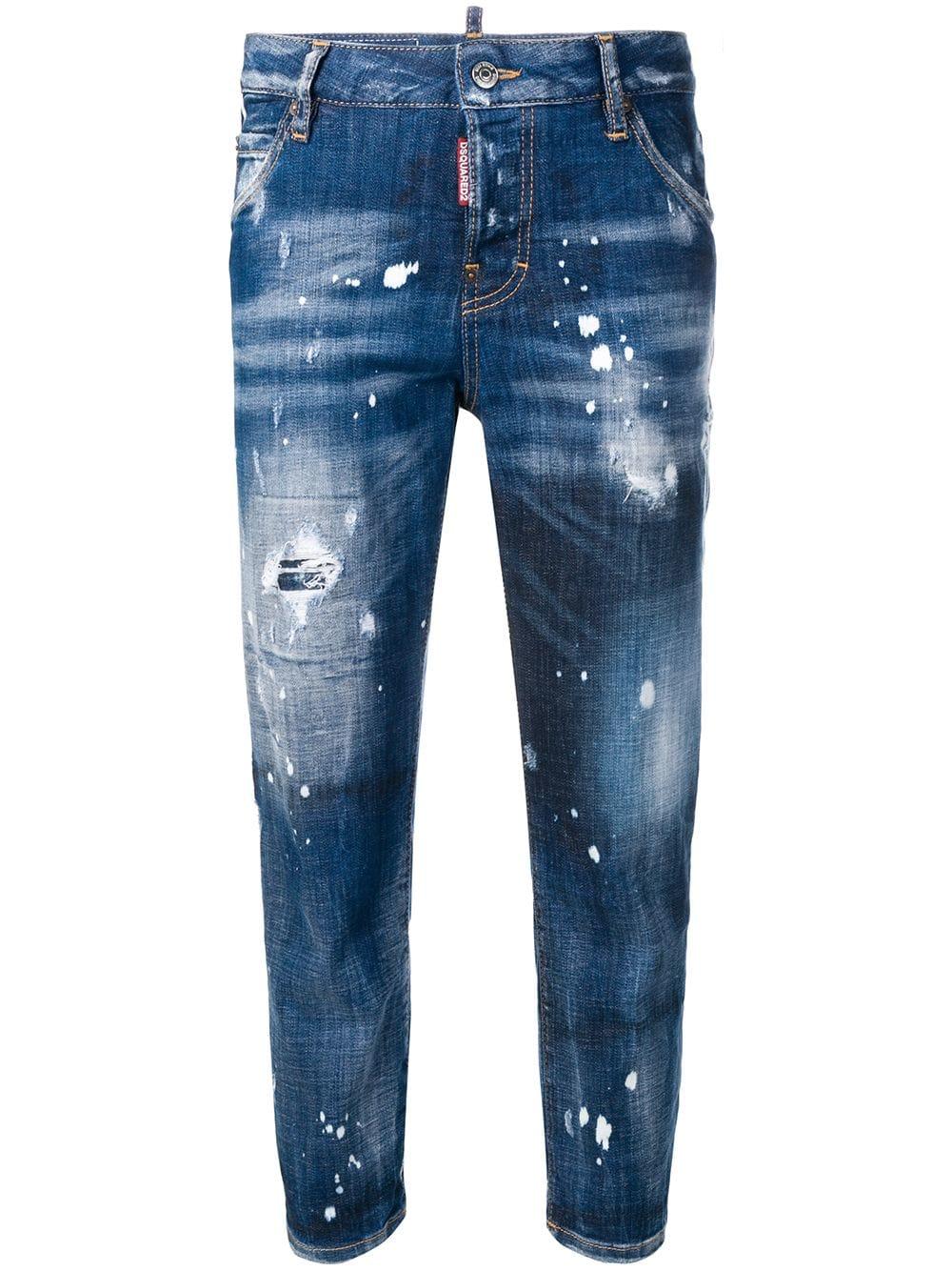 DSQUARED2 present these bleached effect cropped jeans for its SS19 collection. Fashioned from a stretchy cotton blend, these blue jeans from DSQUARED2 feature a button fly fastening, a waistband with belt loops, a five pocket design, a mid rise, a branded rear patch and distressed effects. Material:Spandex/Elastane/Cotton/Polyester. Colour: blue