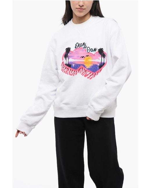 Women's White Brushed Cotton Spray Sunset Crew Neck Sweatshirt