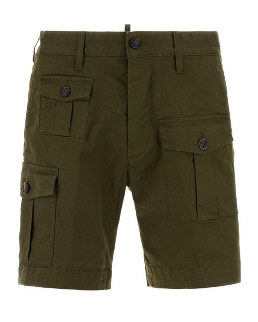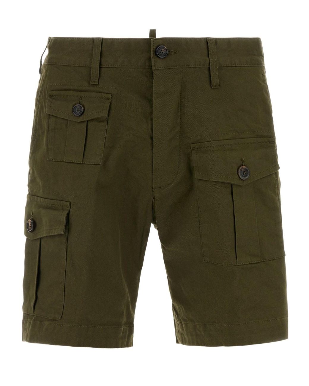 Olive Green Stretch Cotton Sexy Cargo Bermuda Shorts - Green