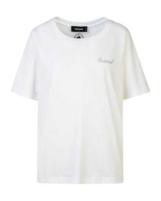Logo Rhinestone Embellished Crewneck T-Shirt - White