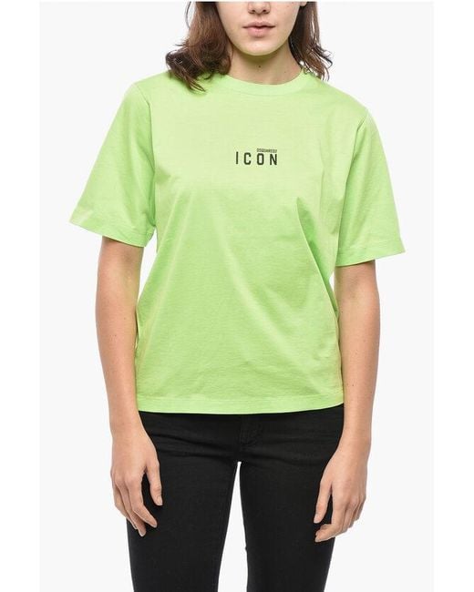 Women's Green Crew Neck Icon Cotton T-Shirt