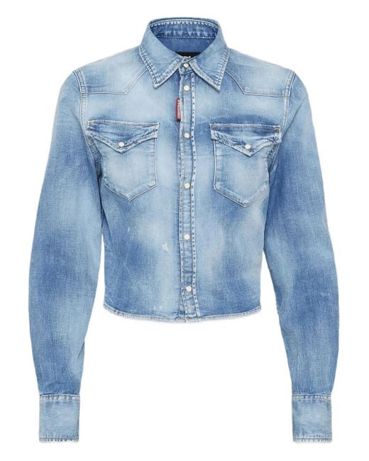 Western Cropped-Fit Stretch-Denim Shirt - Black