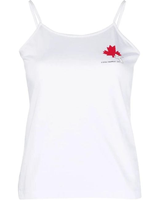 Women's White Maple Leaf Logo-Print Vest Top