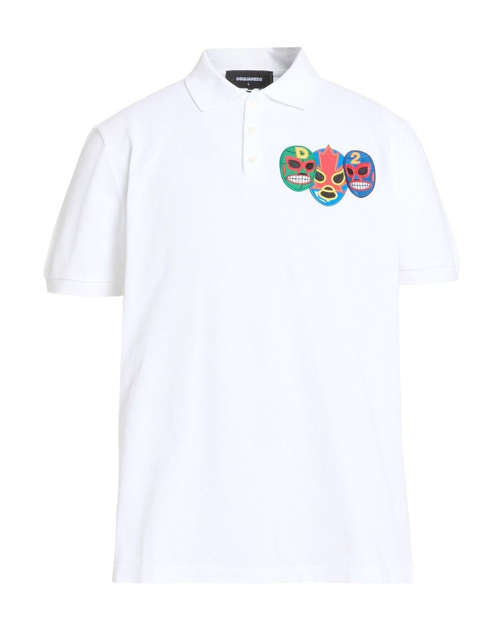 DSQUARED2. piqué, plain colour with appliqués, patches, brand logo, buttoned neckline, short sleeves, contains non-textile parts of animal origin, machine wash or dry clean, do not bleach, do not tumble dry. 100% Cotton. Colour: white