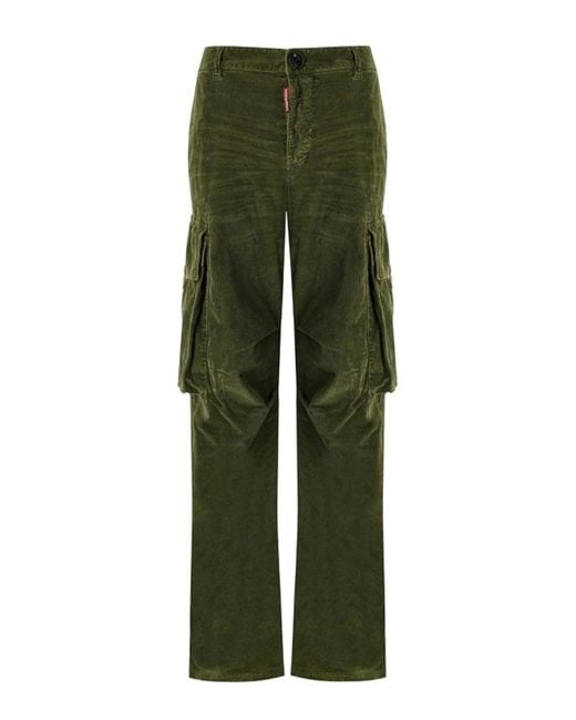 Darck green tyrousers from dsquared2 featuring concealed fly and button fastening, two side inset pockets, two rear patch pockets, wide leg Colour: green