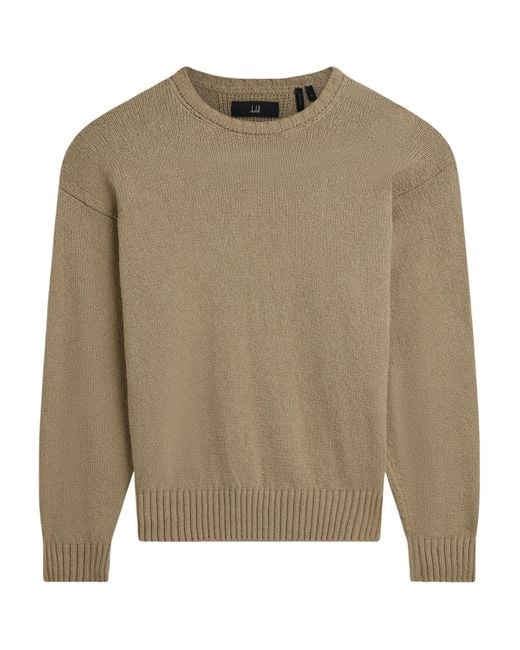 Dunhill’s cotton crew-neck jumper is knitted with a fully fashioned neckline that ensures a clean silhouette. Vintage-inspired dropped shoulders and ribbed trims provide subtle structure, while the turn-back cuffs punctuate the design, creating a garment that balances relaxed comfort with the House’s signature attention to proportion and detail. Colour: brown