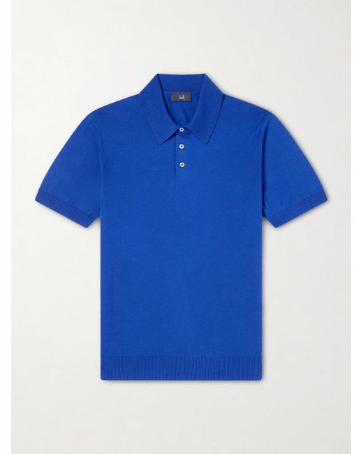 dunhill Slim-fit Cotton And Mulberry Silk-blend Polo Shirt in Blue for Men | Lyst UK