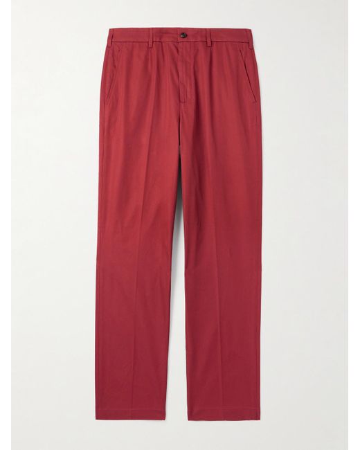 Men's Red Slim-Fit Straight-Leg Pleated Cotton-Gabardine Chinos