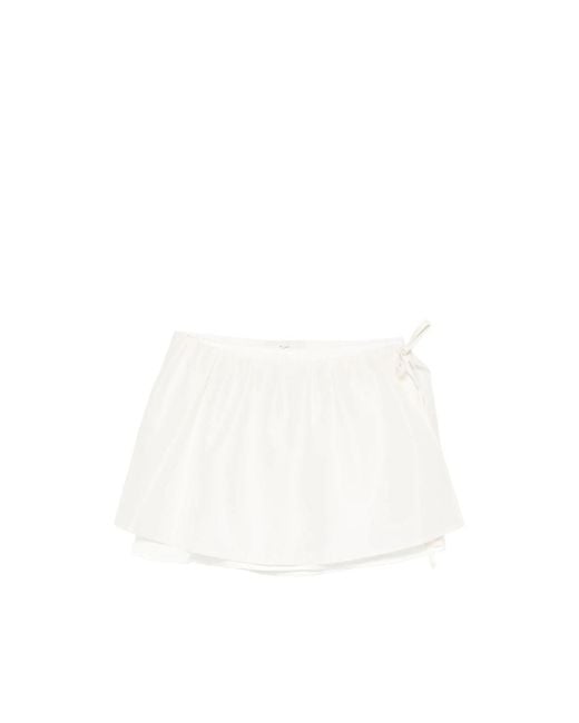 Women's White Drawstring Layered Mini Skirt
