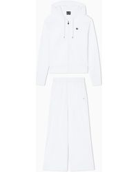 Go to EA7Stretch cotton tracksuit with comfortable volumes. The style consists of a hooded sweatshirt with two practical side pockets, a zip fastening plus a pair of wide-leg, cosy, comfortable trousers with a practical drawstring