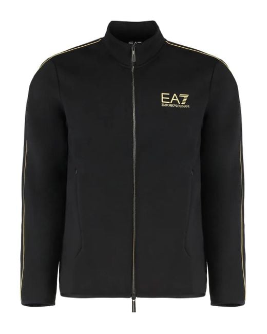 Black full-zip fastening long sleeves logo print side stripe detailing high neck Size: S. Gender: Male. Material:Elastane/Polyester/Viscose. Colour: black