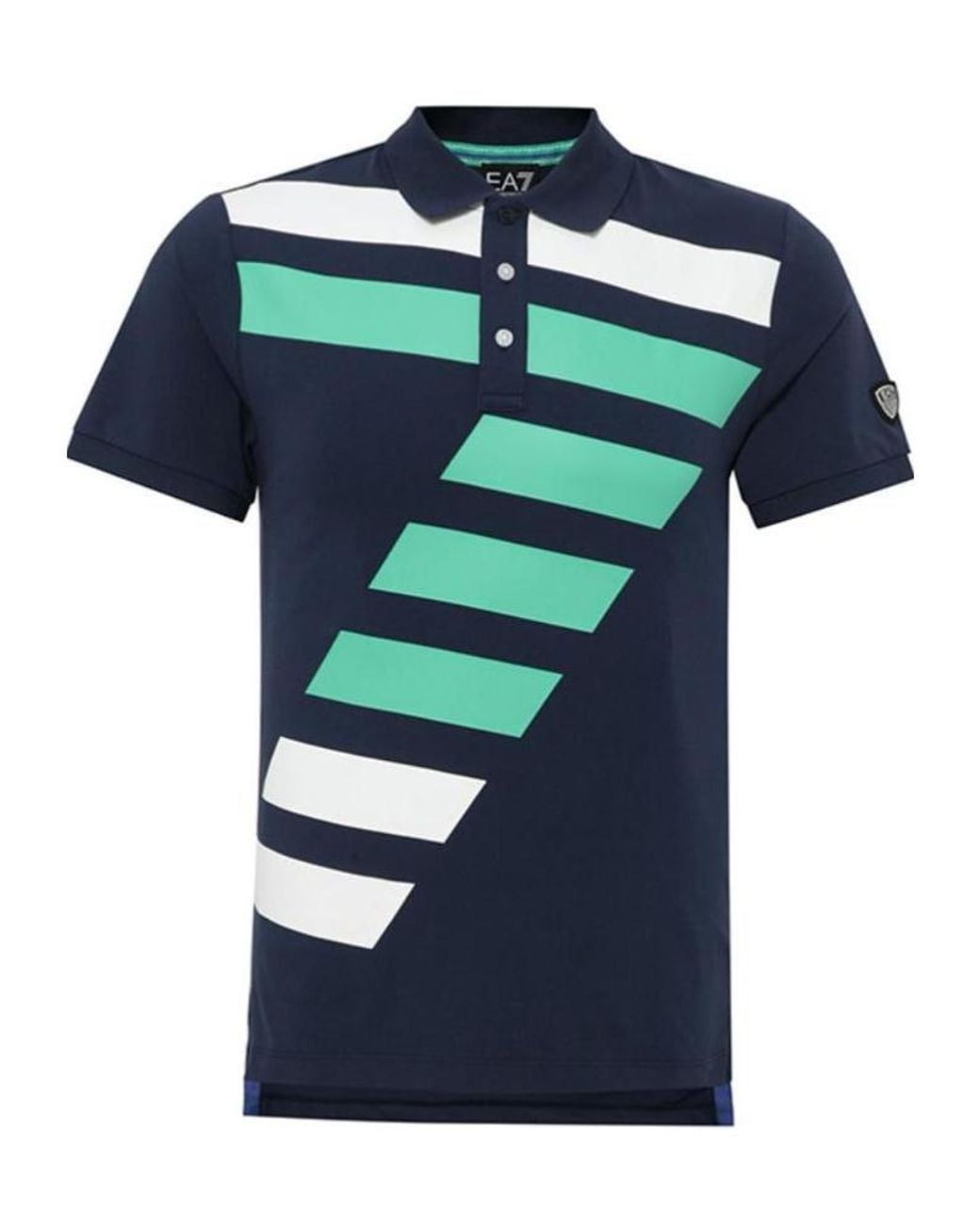 Lapel, short sleeves, logo details, straight hem. Colour: blue