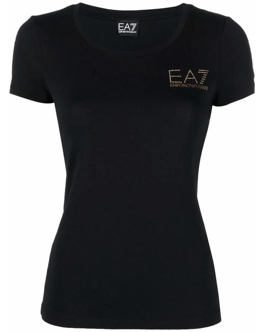 Jet-black/gold-tone cotton-blend logo print to the front round neck short sleeves straight hem Size: XS. Gender: Female. Material:Cotton/Modal/Elastane.