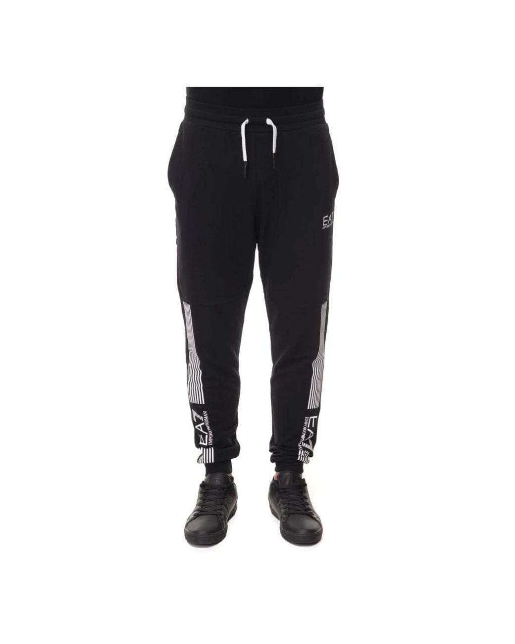Elevate your casual style with these Emporio Armani EA7 sweatpants for men. Featuring overall design, stretchy tie waist, elastic bottom, raised logo, and contrasting color stripes. These trousers come with 2 diagonal pockets, a regular fit, and are made of 58% cotton, 36% polyester, and 4% elastane.