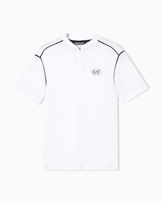 Made from VENTUS7 technical fabric, this T-shirt ensures maximum performance, thanks to its highly breathable material that helps keep body temperature at an ideal level. This style, customised with a contrasting logo on the chest and the iconic eagle logo on the back, goes perfectly with the collection’s joggers and shorts. The piece is part of the Tennis Pro collection, a selection that combines technicality and elegance, to make an impact on every playing field. A line that is in step with the trends, perfect for those looking for a winning combination of style and performance. Colour: white