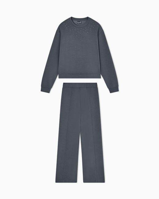 Tracksuit made of a stretch modal blend, consisting of a crew-neck sweatshirt with a micro stud detail that embellishes the neckline and trousers with relaxed-fit legs. A versatile style customised with a matching EA7 logo, perfect for wearing to the gym or for relaxation. Colour: blue