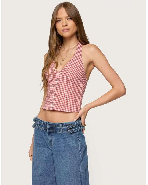 Tops by Edikted Gingham design Halterneck style Button-through front Shirred, stretch panel to back Slim fit Colour: blue