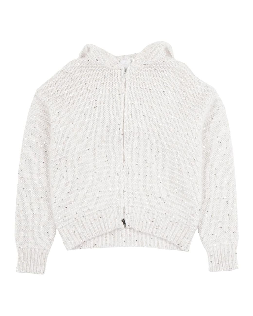 Wool-Blend Sequin Zip-Up Cardigan - White