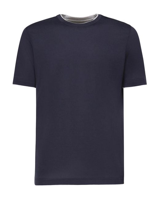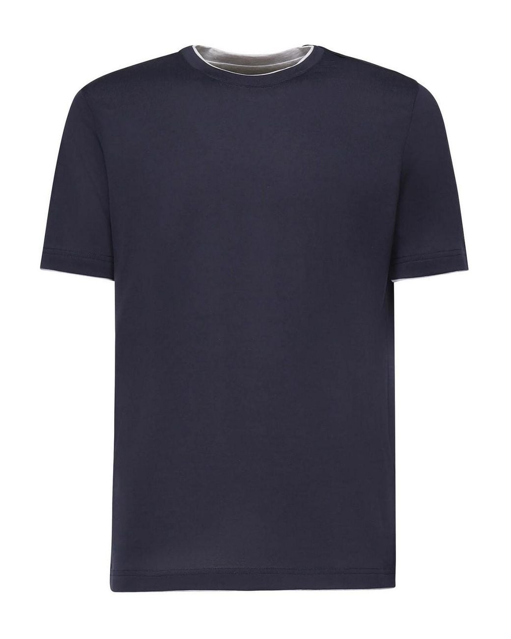 Contrasting Profile Giza Cotton Jersey T-Shirt - Blue