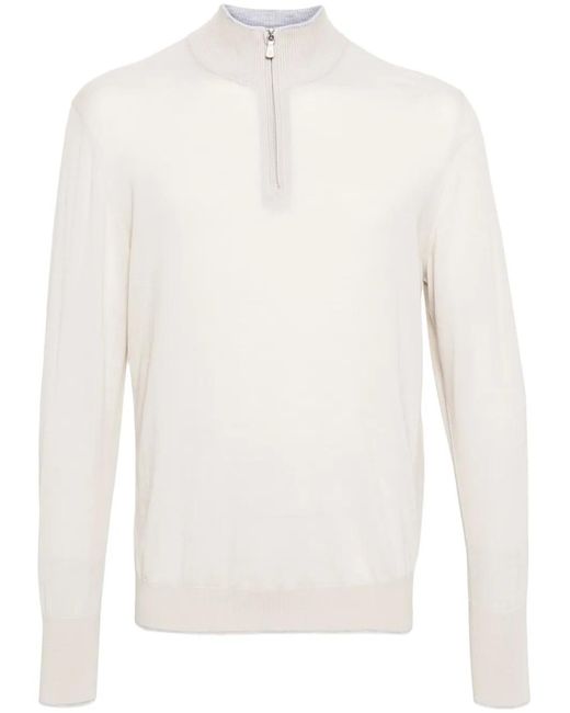 Sand beige wool knitted construction half front zip fastening drop shoulder long sleeves ribbed cuffs and hem straight hem Size: 3XL. Gender: Male. Material:Wool. Colour: white