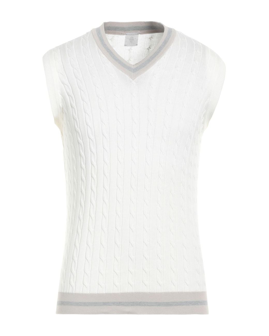 ELEVENTY. knitted, lightweight knit, no appliqués, multicolour, v-neck, sleeveless, without pockets, machine wash or dry clean, do not bleach, do not tumble dry, this brand runs small. 100% Cotton.