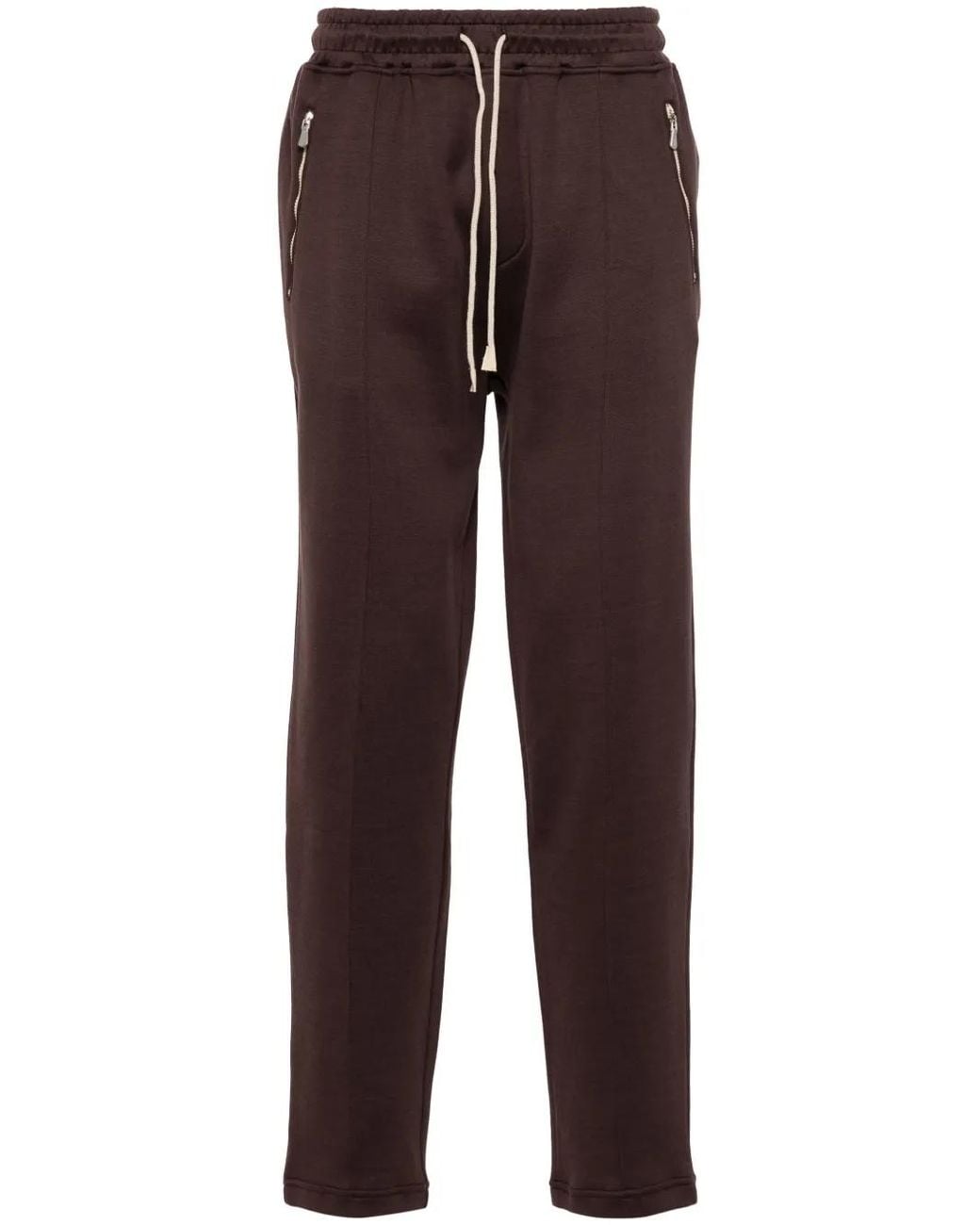 Plum purple cotton blend jersey texture raised seam detail mid-rise elasticated drawstring waistband two side zip-fastening pockets rear zip-fastening pocket tapered leg Size: XXL. Gender: Male. Material:Cotton/Polyamide. Colour: brown