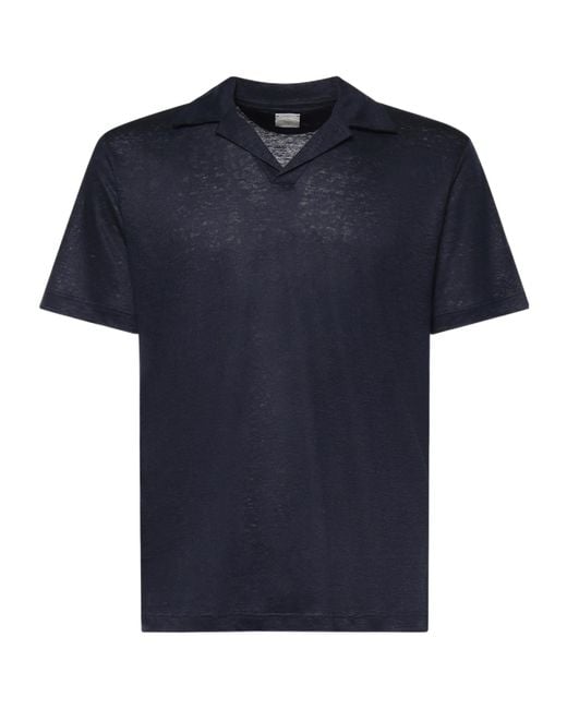 Men's Blue Open Collar Linen Polo Shirt