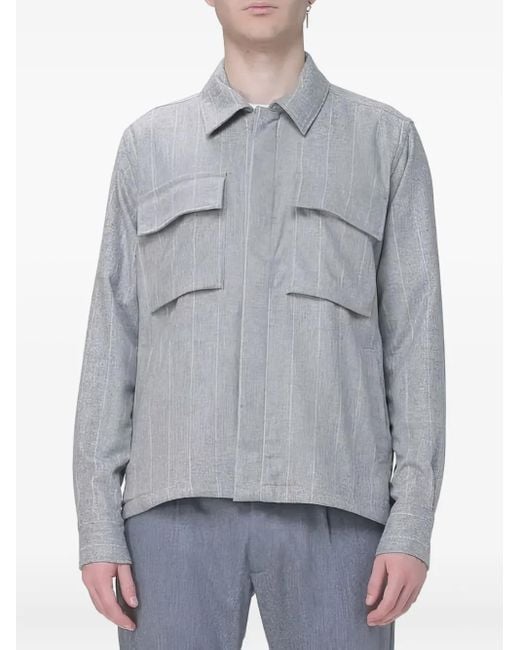 Men's Grey Chemise Rayée À Poche Poitrine