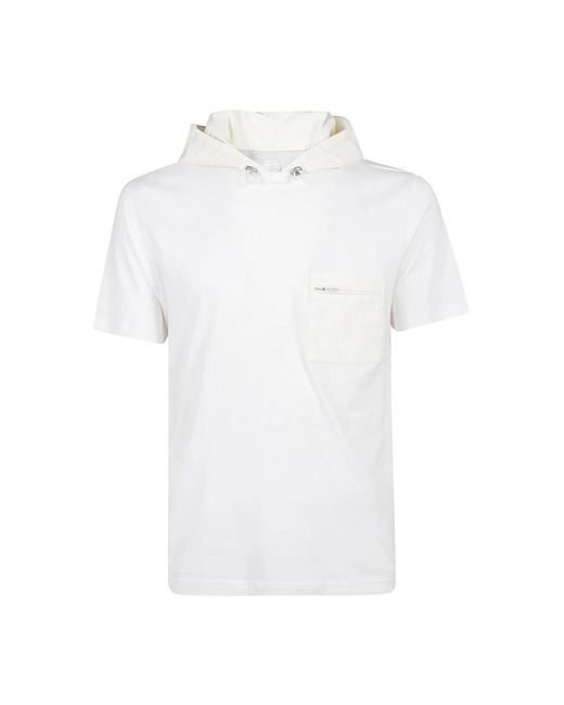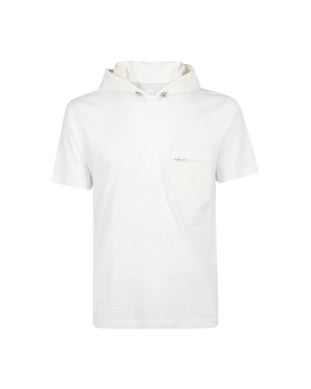 Discover the Hooded T-shirt crafted from luxurious Giza cotton, known for its high resistance, brightness, and extraordinary softness. This piece features a technical nylon hood with a drawstring and metal finishes, offering a blend of comfort and style. Key attributes: White | Ivory | Giza cotton jersey | High resistance | Brightness | Extraordinary softness | Hood with drawstring | Metal finishes | Hood inserted in technical nylon | Dimensions & fit: Regular fit | Composition & care: 100% cotton | Machine wash cold, tumble dry low