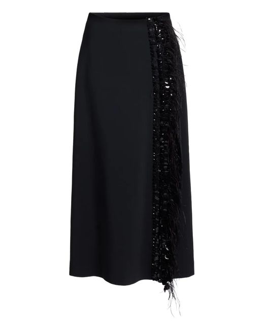 Black feather trim slit detail Size: 38. Gender: Female. Material:Viscose/Acetate/Elastane/Feather. Colour: black