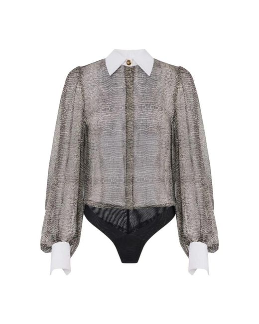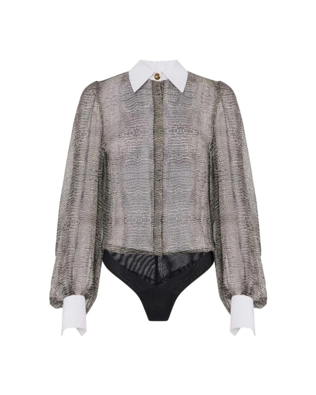 Elisabetta Franchi Body Pitone con Colletto is a slim-fit silk voile body that pairs a shirt-inspired collar with voluminous sleeves. Its python-print motif makes it suitable for elevated day-to-night looks. Key attributes: Multicolour | Nero | Silk | Lightweight voile | Breathable fabric | Shirt-style collar | Shirt-inspired cuffs | Voluminous long sleeves | Python-print pattern | Dimensions & fit: Slim fit | Composition & care: 100% Seta Colour: grey