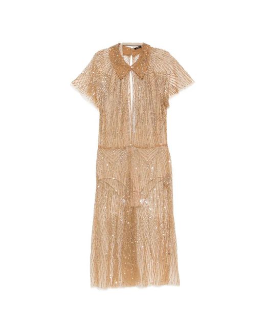 Women's Natural Collared Embellished Midi Dress